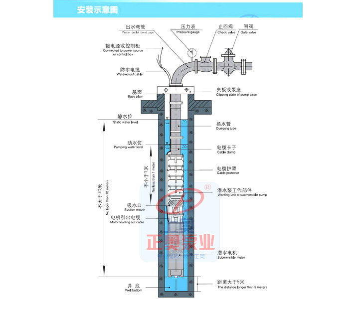 (4)熟悉安裝使用說明書,對新鉆的水井必須進行洗井,清除水中泥砂后,方能安裝QJ型潛水電泵。