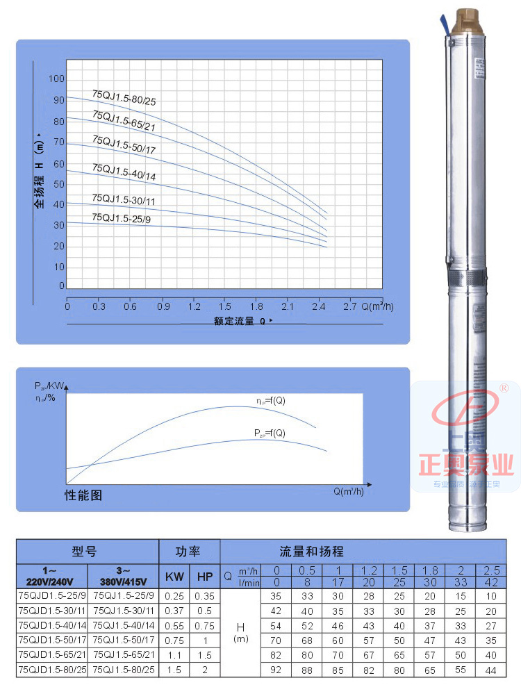 75QJ井用潛水泵產(chǎn)品選型: