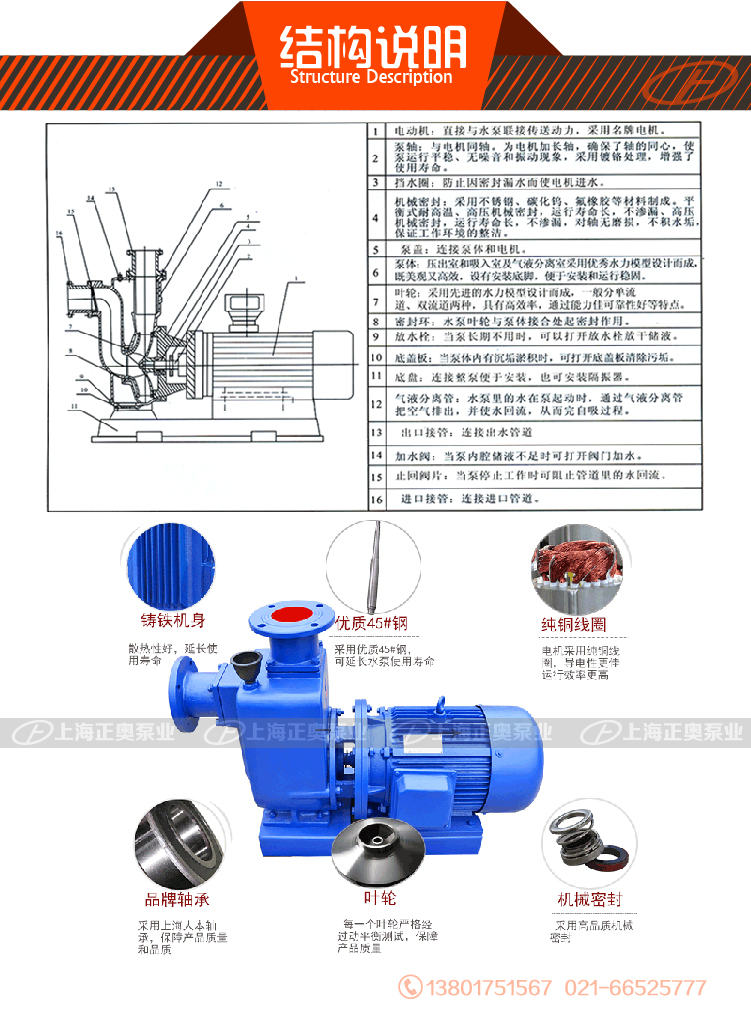 6、結構獨特、自吸性能好,工作前只需保證泵體內儲有定量引液即可。