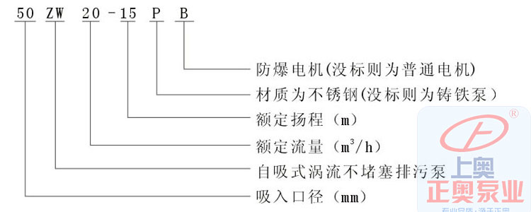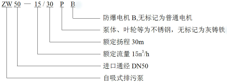 六、ZW型自吸式無堵塞排污泵型號定義: