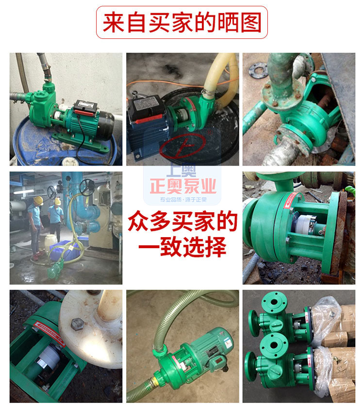 正奧公司生產(chǎn)的101型、102型、103型、104型、105型泵系單吸直聯(lián)式塑料離心泵是一種小型塑料泵,產(chǎn)品結(jié)構(gòu)、體積小、重量輕、耗電省、耐酸堿、密封好、維修方便。FS型工程塑料離心泵系列產(chǎn)品均采用機(jī)械密封,并引進(jìn)國際工藝和技術(shù)配方,全使用改性ABS(工程塑料)作為泵的材質(zhì),在同系列的塑料泵產(chǎn)品中,充分顯示了其結(jié)構(gòu)重量輕、體積小、壽命長(zhǎng)等特點(diǎn),廣泛應(yīng)用于化工,食品、制藥、電鍍、造紙、環(huán)保、水處理等部門,輸送酸、堿、鹽等腐蝕性液體。其中104型采用220V電壓,可供家庭選用。