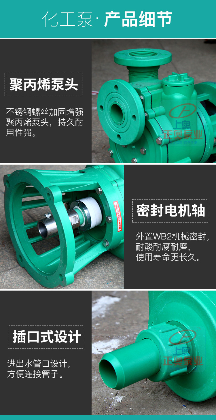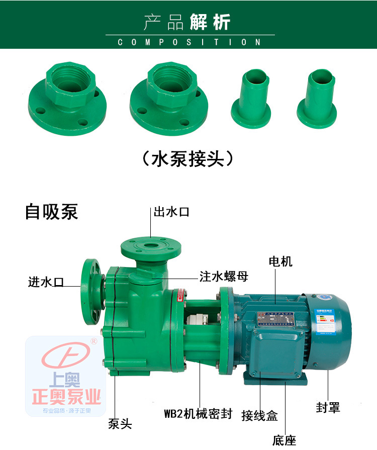 上奧牌FPZ自吸泵采用增強(qiáng)聚丙烯(CFR-PP)一次注塑成型,機(jī)械強(qiáng)度高,耐腐蝕性能強(qiáng),自吸泵結(jié)構(gòu)上有獨(dú)具一格的科學(xué)性,泵腔內(nèi)設(shè)有吸液室、儲(chǔ)液室、回液止回閥、氣液分離室、回流孔。只需在第一次開機(jī)前灌引液,以后不必重復(fù)灌注引液,在吸送介質(zhì)時(shí),液體可時(shí)斷時(shí)續(xù),斷液15分鐘內(nèi)來液可繼續(xù)吸送,機(jī)械密封不需另加冷卻水冷卻,操作簡(jiǎn)便、安全無泄漏,是取代液下泵的產(chǎn)品。CFR-PP材質(zhì):無毒、無污染、耐一般酸堿鹽類,工作溫度-14℃~80℃。