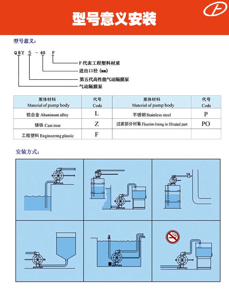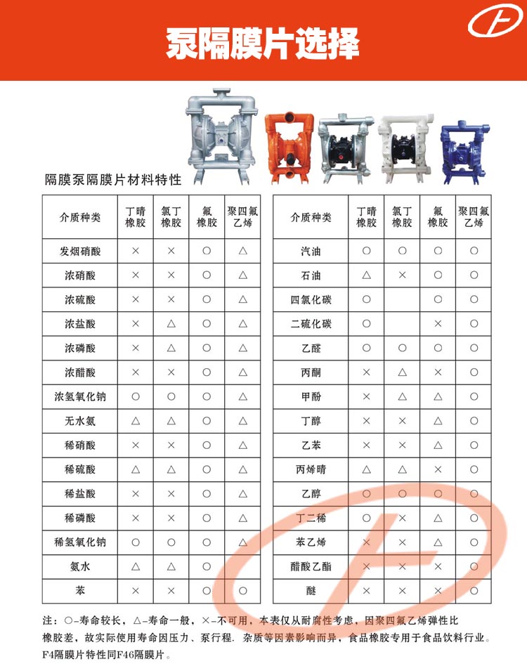 流體部件材質(zhì)有:鋁合金、鑄鐵、聚丙烯、不銹鋼、隔膜根據(jù)不同膜片材質(zhì)分別有:丁晴橡膠、氯丁橡膠、聚乙烯、聚膠、聚醚橡膠、氟橡膠、氟塑料、特氟隆。以滿足不同液體介質(zhì)的需要。