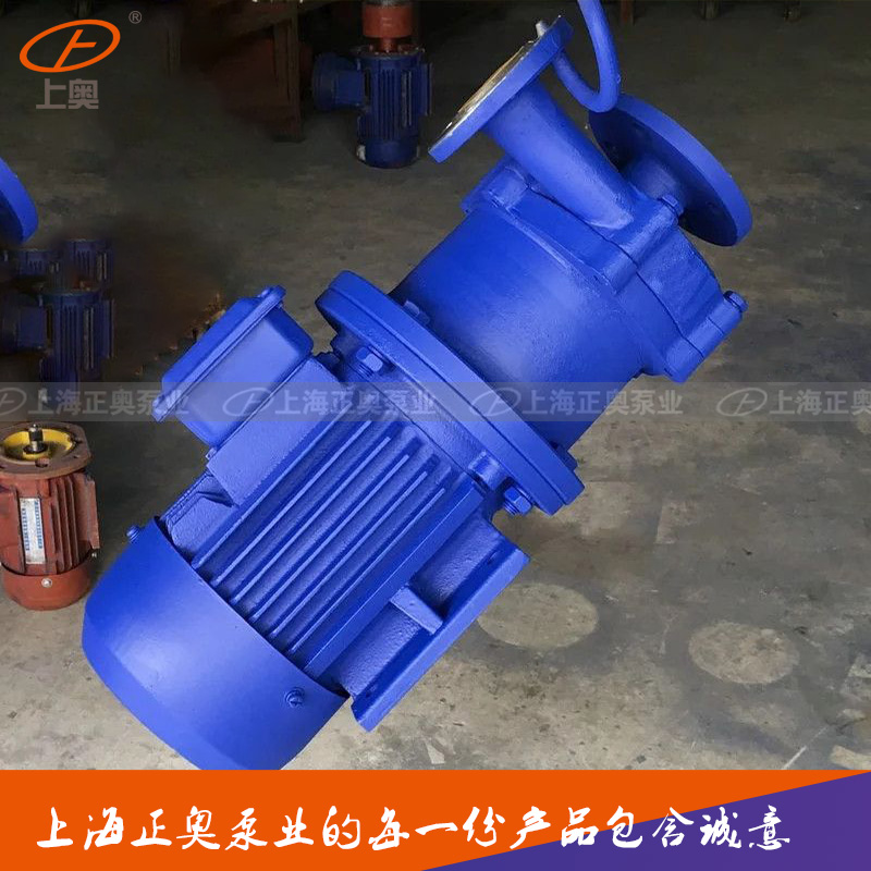 四、安裝和使用 1.磁力泵應(yīng)水平安裝,不宜豎立,塑料泵體不得承受管路重量,對于特殊要求垂直安裝的場合,電機務(wù)必朝上。 2.當(dāng)抽吸液面高于泵軸心線時,起動前打開吸入管道閥門即可,若抽吸液面低于泵軸收線時,管道需配備底閥。 3.泵使用前應(yīng)進行檢查,電機風(fēng)葉轉(zhuǎn)動要靈活,無卡住及異賞聲響,各緊固件要緊固。 4.檢查電機旋轉(zhuǎn)方向是否與磁力泵轉(zhuǎn)向標(biāo)記一致。 5.電機啟動后,緩慢打開排出閥,待泵進入正常工作狀態(tài)后,再將排出閥調(diào)到所需開度。 6.泵停止工作前,應(yīng)先關(guān)閉排出閥門,然后關(guān)閉吸入管閥門。五、使用注意事項 1.因磁力泵軸承的冷卻和潤滑是靠被輸送的介質(zhì),所以絕對禁止空運轉(zhuǎn),同時避免在工作中途停電后再啟動時所造成吋空載運轉(zhuǎn)。 2.被輸送介質(zhì)中,若含有固體顆粒,泵入口要加過濾網(wǎng):如含有鐵磁質(zhì)微粒.需加磁性過濾器。 3.泵在使用中環(huán)境溫度應(yīng)小于40℃ ,電機溫升不得超過75℃ 。 4.被輸送的介質(zhì)及其溫度應(yīng)在泵材允許范圍內(nèi)。工程塑料泵的使用溫度〈60℃,金屬泵的使用溫度〈100℃,輔送吸入壓力不大于0.2MPa,最大工作壓力1.6MPa、密度不大于1600^kg/m3,,粒度不大于30 X 10-6㎡/S的不含硬顆粒和纖維的液體。 5.對于輸送液為易沉淀結(jié)晶的介質(zhì),使用后應(yīng)及吋清洗,排凈泵內(nèi)積液。 6.磁力泵運行500小時后,應(yīng)拆檢軸承和端面動環(huán)的磨損惰況,若軸承和軸套的間隙大于0.5~1mm,葉輪軸向竄動1. 5~2mm時,應(yīng)更換軸承和軸向動環(huán)。