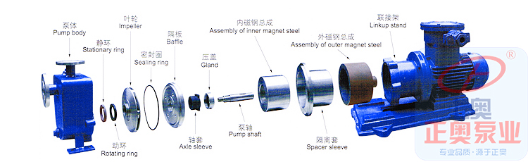 ZCQ系列自吸式磁力泵(以下簡稱自吸泵)是根據(jù)眾用戶的要求,該泵以靜密封取代動密封,使泵的過流部件處于完全密封狀態(tài),解決了其它泵機械密封無法避免的跑、冒、滴、漏之弊病,泵體及過流部件的材料均采用了耐腐蝕的不銹鋼、鋼玉陶瓷、四氟石器等材料制造,即有CQ型磁力驅(qū)動泵的功能,又集自吸于一身,不需底閥和引灌水、自吸高度4米。