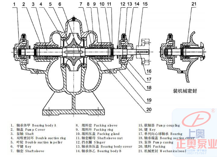 泵主要零件有:泵體、泵蓋、葉輪、軸、雙吸密封環(huán)、軸套等。