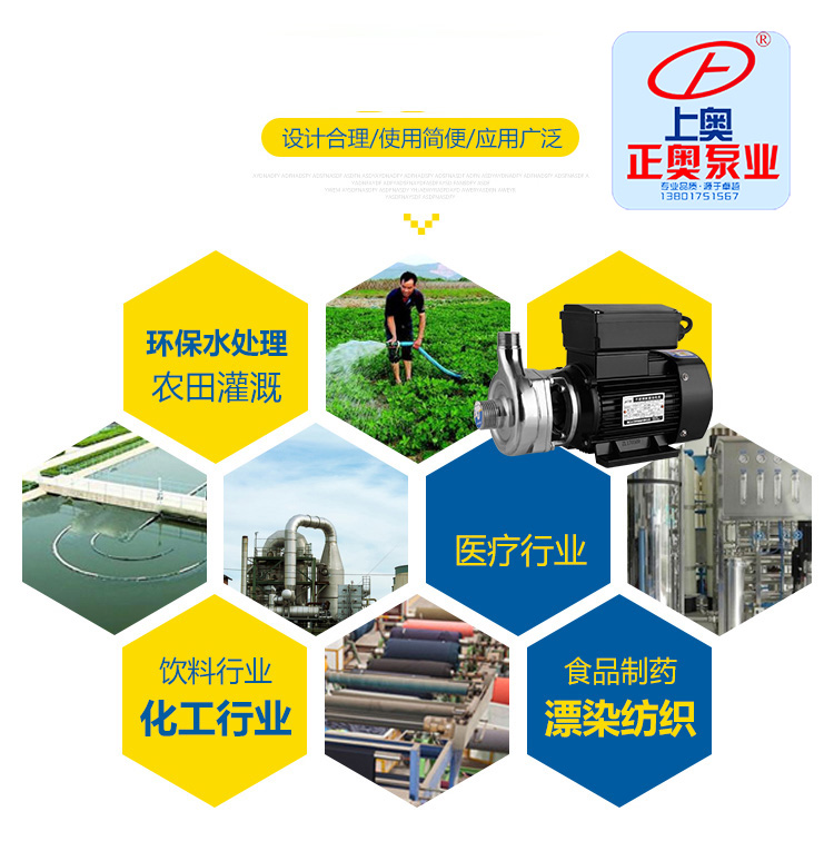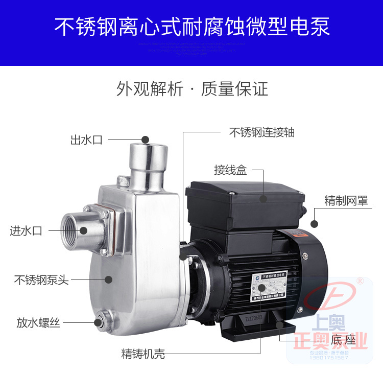 不銹鋼自吸式耐腐蝕離心泵可輸送溫度不高于103℃,含有細(xì)小軟顆;蚶w維質(zhì),帶腐蝕性或有衛(wèi)生要求的液體,廣泛適用于食品、飲料、醫(yī)藥、污水處理、化工、電鍍、漂染、精細(xì)化工等行業(yè)使用。