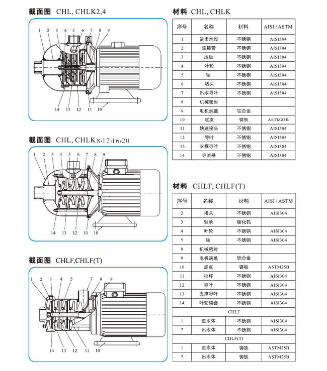 輕型臥式多級離心泵CHL,CHLK和CHLF(T)非自吸離心泵,配加長軸電機采用了免修機械密封,緊湊式結(jié)構(gòu)使泵尺寸很小,軸向入口和徑向出口。多級離心泵的過流部件均采用不銹鋼材料(304或316)制成,輕型不銹鋼多級離心泵具有低噪音,耐輕腐蝕,外形美觀、體積小、重量輕、使用壽命長等特點,不同材質(zhì)的硬質(zhì)合金密封,保證了不同介質(zhì)輸送均無泄漏;噪音低:兩個低噪音軸承下的水泵,運轉(zhuǎn)平穩(wěn),除電機微弱聲響,基本無噪聲;故障率低:結(jié)構(gòu)簡單合理,整機無故障工作時間大大提高。采用國內(nèi)優(yōu)秀水力模型優(yōu)化設(shè)計而成輕型臥式多級離心泵。