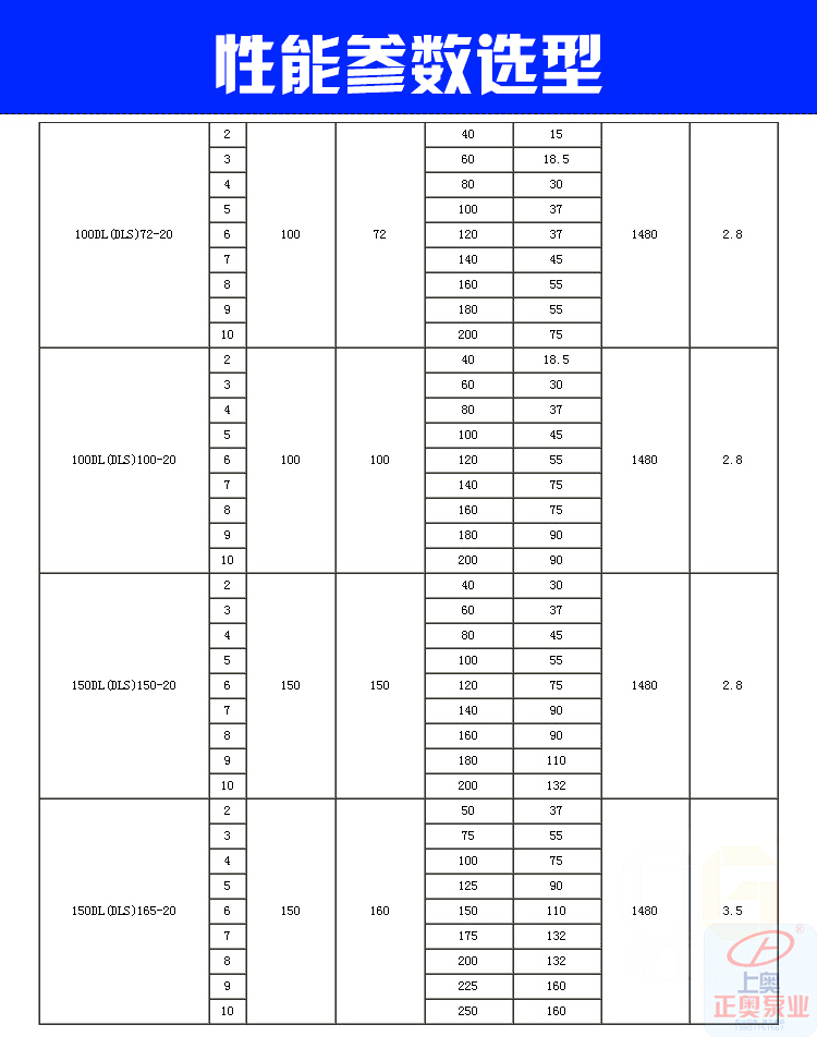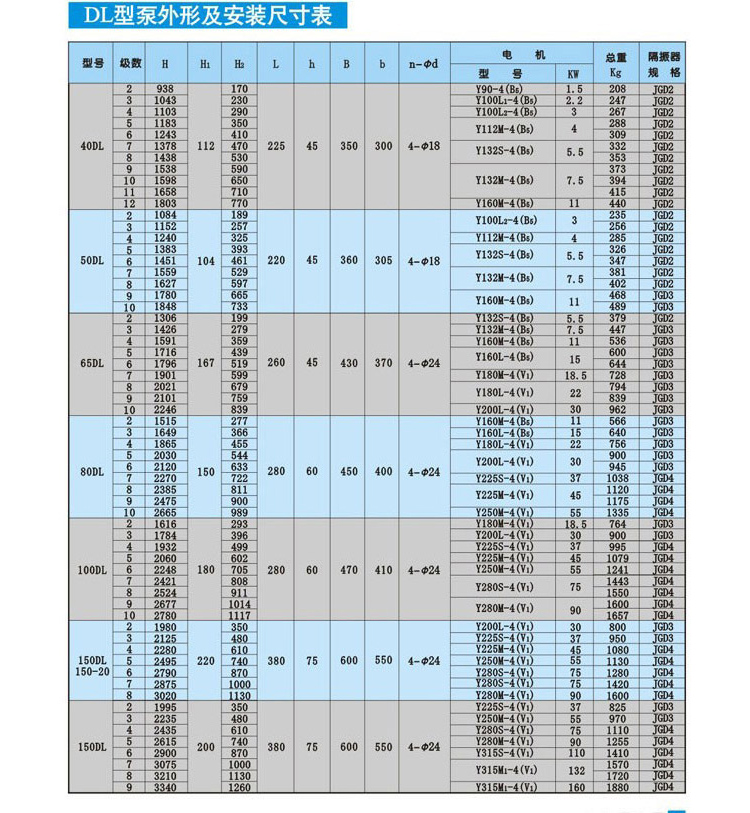 五、DL系列立式多級(jí)離心泵選型參數(shù):