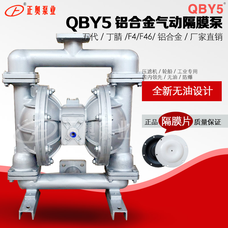 全新第五代系列QBY5型氣動(dòng)隔膜泵,無(wú)油氣動(dòng)隔膜泵,高吸程高流量隔膜泵,可替代進(jìn)口隔膜泵等等品牌,壓濾機(jī)專用隔膜泵,礦用氣動(dòng)隔膜泵,船用氣動(dòng)隔膜泵,工業(yè)專用氣動(dòng)隔膜泵。,取代部份離心泵、螺桿泵,來(lái)應(yīng)用于石化、陶瓷、冶金等行業(yè),產(chǎn)品設(shè)計(jì)均參考國(guó)外隔膜泵樣機(jī)。氣動(dòng)隔膜泵與電動(dòng)隔膜泵結(jié)構(gòu)緊湊,外形美觀,體積小,噪聲低,運(yùn)行可靠,使用維修方便,廣泛用于石油、化工、制藥、電鍍、印染、食品、科研等單位抽送酸、堿、油類及稀有貴重液、毒液、揮發(fā)性液體,以及循環(huán)水設(shè)備配套特別是易漏、易爆、易燃液體的抽送。